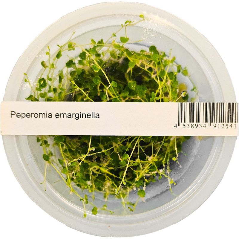 Peperomia emarginella is a miniature epiphytic species beloved for its tiny, perfectly rounded leaves and delicate trailing growth habit. Native to tropical regions of Central and South America, this plant thrives in warm, humid environments, where it naturally grows along tree trunks and mossy surfaces. Its compact form, soft green foliage, and gentle vining nature make it a favourite for terrariums, paludariums, and hanging displays.
