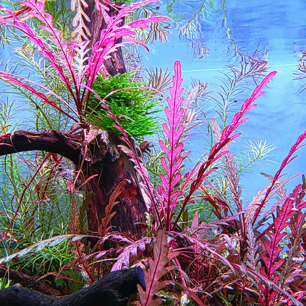 To maintain a tidy appearance and prevent the plant from becoming leggy, regular pruning is recommended. The trimmed stems can then be replanted to propagate new growth. For the best coloration and growth form, provide strong lighting and consistent CO2 injection.
