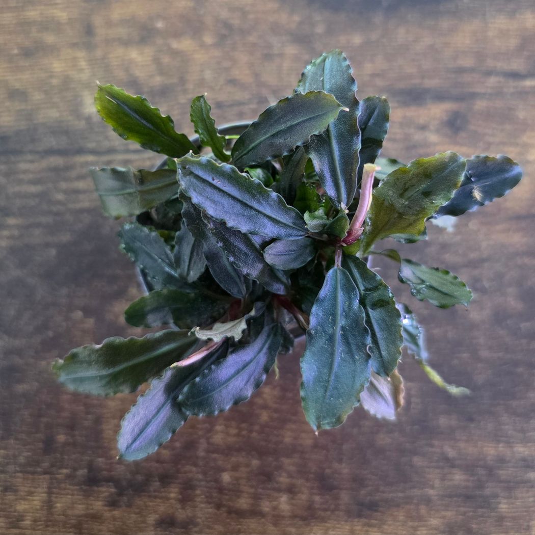 Bucephalandra lamandau  In nature, Bucephalandra usually grows on rocks or wood in rivers and streams - much like Anubias, which they resemble regarding use and care in the aquarium. This plant will look it's very best when provided with good co2 and medium lighting, it will survive without co2 but...