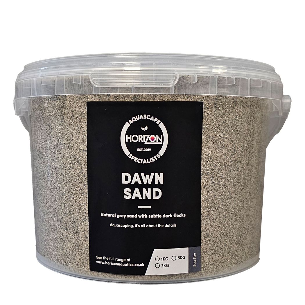 Dawn Sand - 5kg A beautifully natural fine greige sand with a soft, natural greyish / beige tone enriched by lighter and darker flecks throughout. This subtle mix of colours adds depth, movement, and visual interest, making it an ideal substrate for any aquascape style—from minimalist layouts to complex nature...