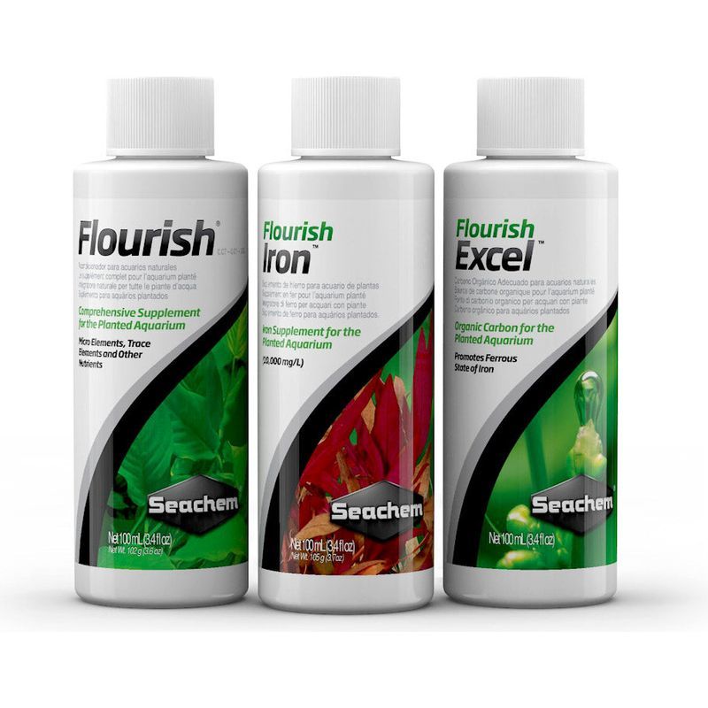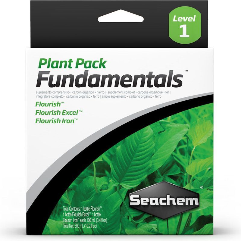 Seachem Plant Pack Fundamentals lv1 Perfect starter pack for beginners Contains 100 mL bottles of Flourish®, Flourish Iron™, and Flourish Excel™ Broad spectrum, iron, and carbon plant Pack™: Fundamentals is an excellent pack for beginning aquatic gardeners. It contains Flourish®, Flourish Iron™, Flourish Excel™. Flourish® is a growth stimulator for aquarium...